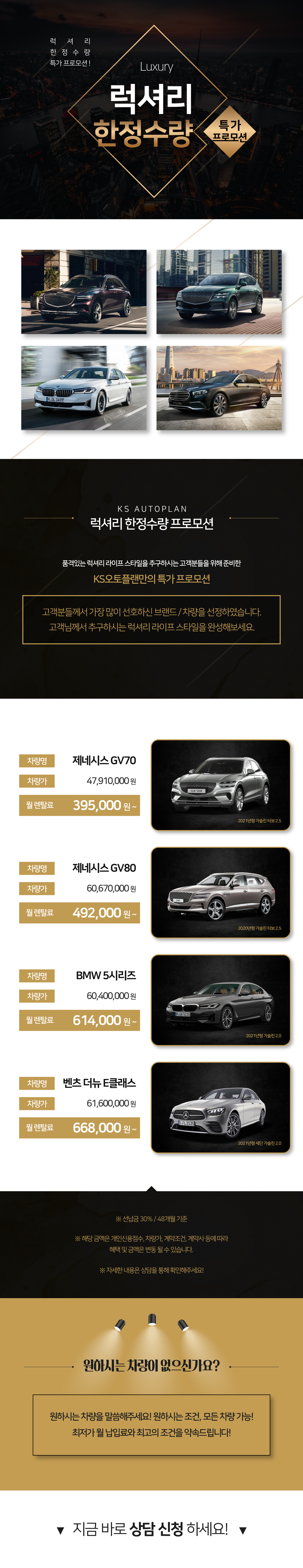 KS오토플랜만의 럭셔리 한정수량 특가 프로모션 !