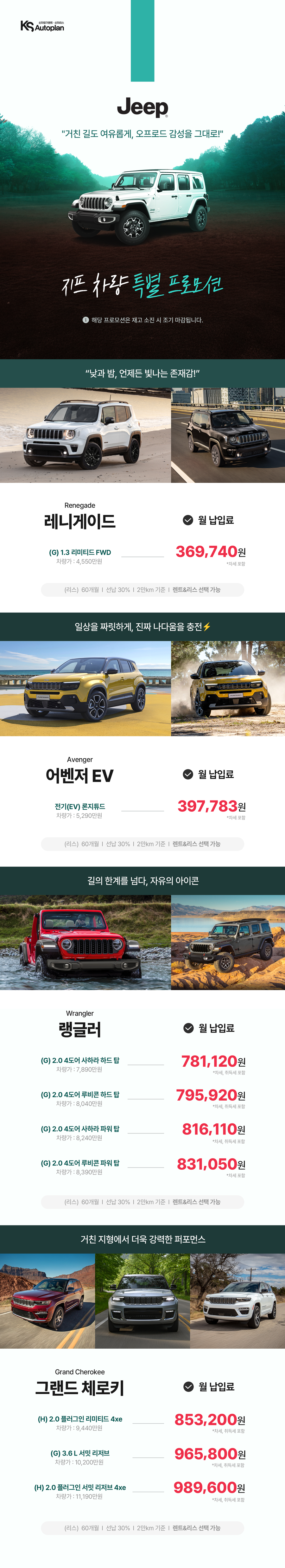 오프로드 끝판왕, 지프 차량 긴급특가!