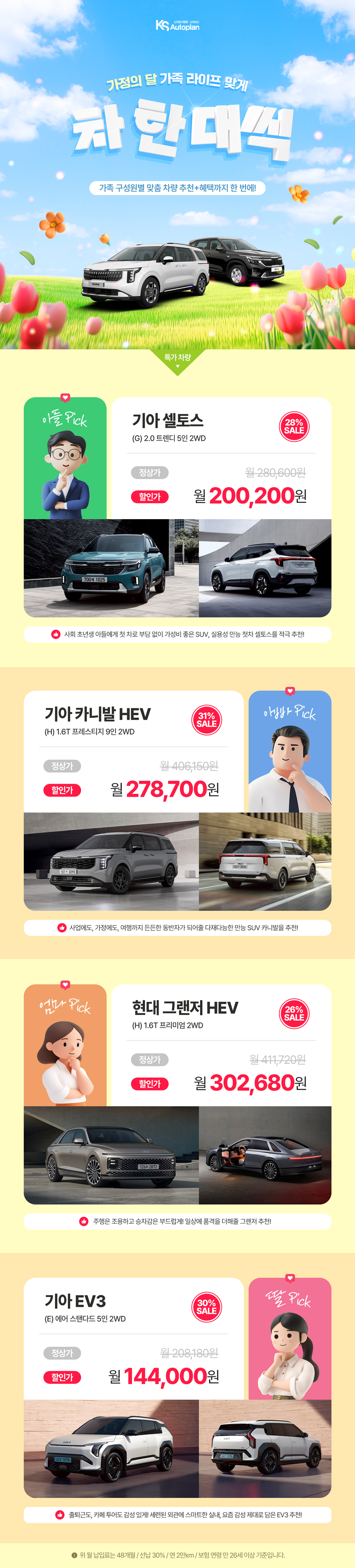 [가정의 달] 가족 라이프 맞게 특가 차량 한 대씩!